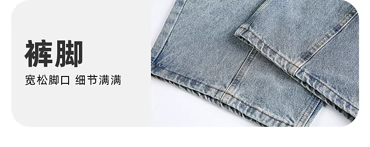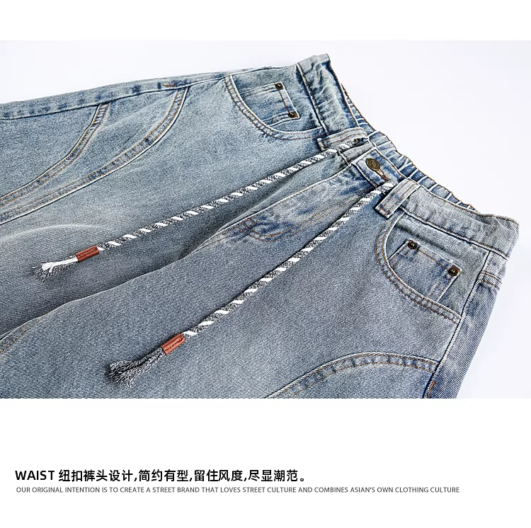Wukong có sẵn quần jean kiểu Mỹ cổ điển, phối màu theo phong cách patchwork, dành cho nam và nữ, dáng rộng, thời thượng, đa năng, dài chấm đất.
