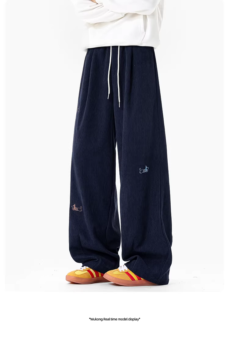 - Wukong có sẵn quần kaki retro thời thượng thêu hình chó, quần ống đứng nam phong cách đường phố, quần ống rộng đa năng, thoải mái.