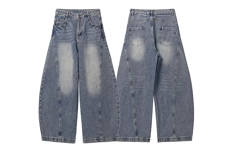 - Wukong có sẵn quần ống cong kiểu retro Mỹ dành cho nam, quần denim thiết kế độc đáo đã qua xử lý, quần dài rộng ống đa năng.