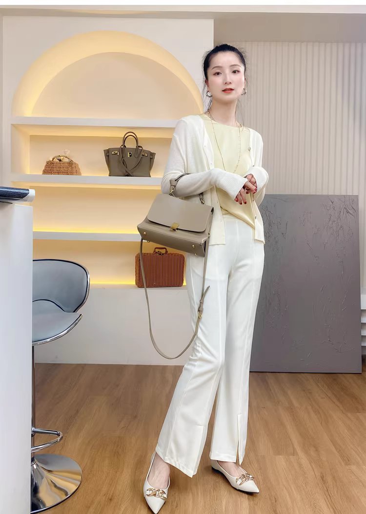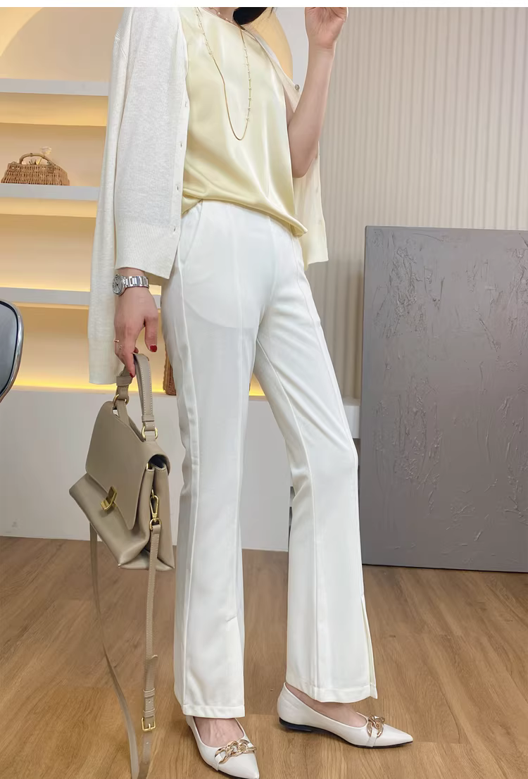 Xả kho! Quần nữ dáng suông, tôn dáng, dài chân, cạp cao, xẻ tà, màu trơn, phong cách thường ngày.