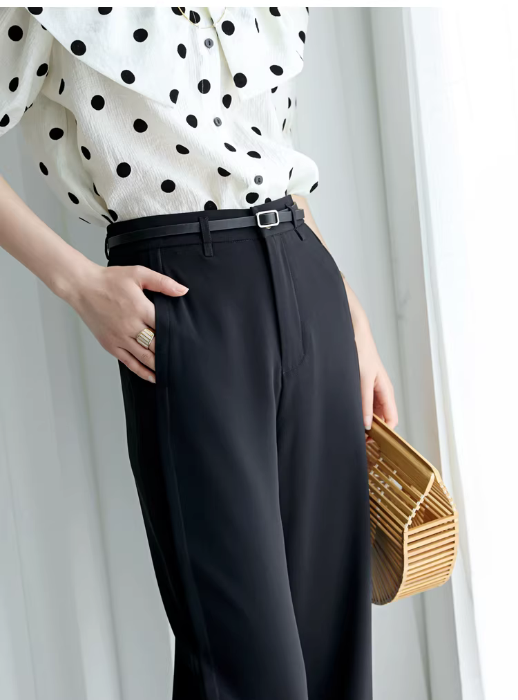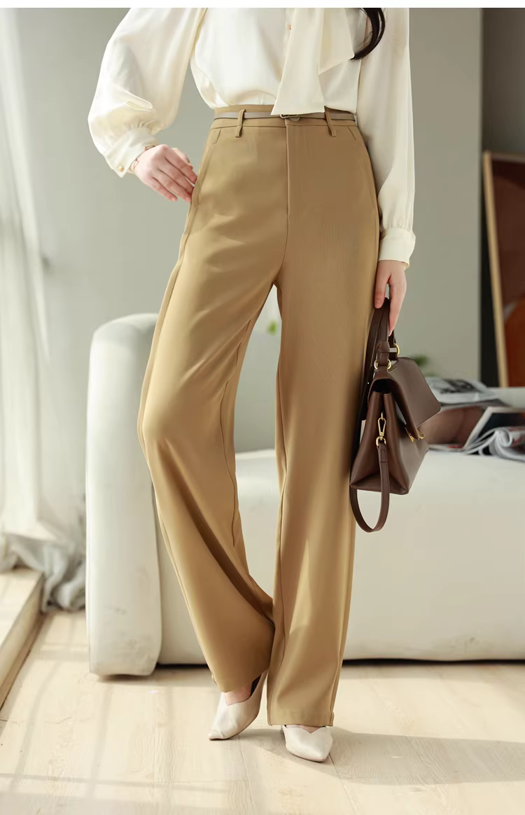 - Xả kho! Quần ống rộng dáng thẳng lưng cao, xếp ly hai lớp ở eo, kiểu dáng công sở, tôn dáng, dành cho nữ mùa hè.