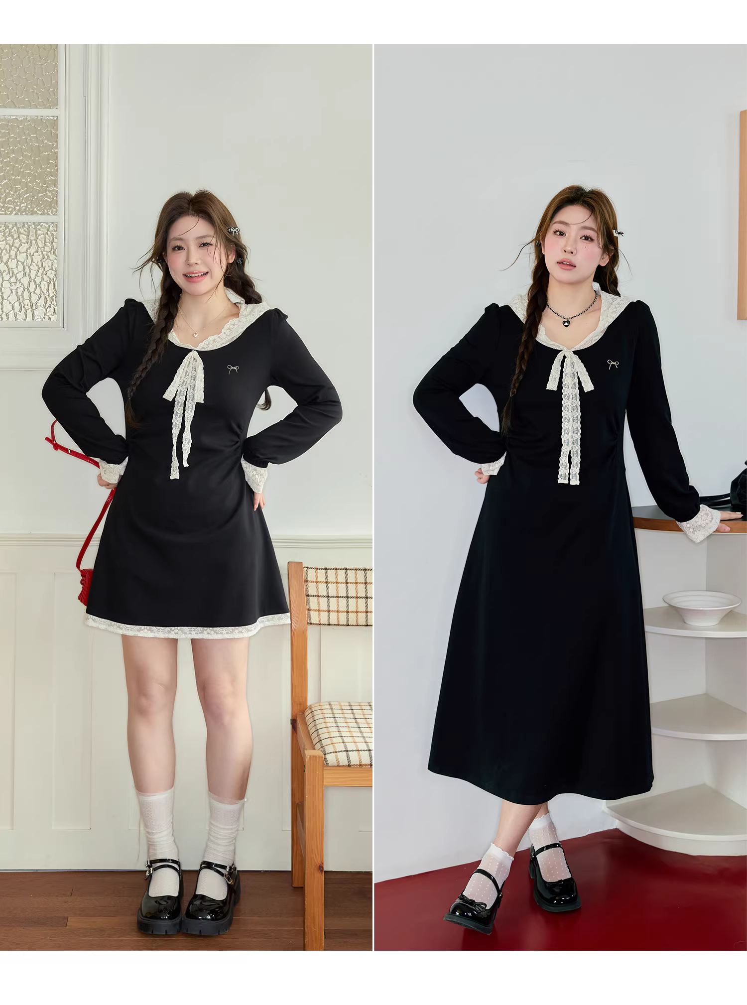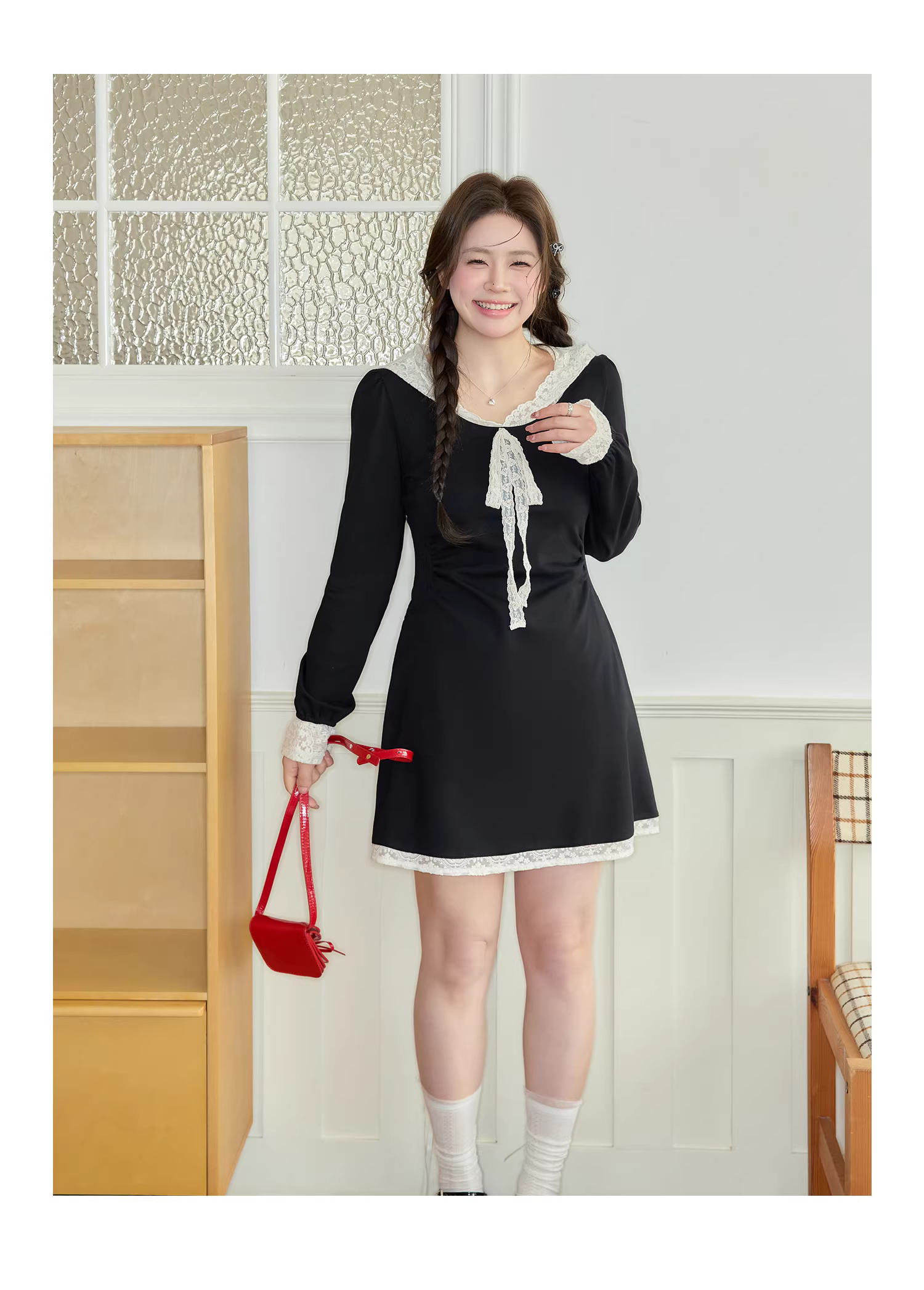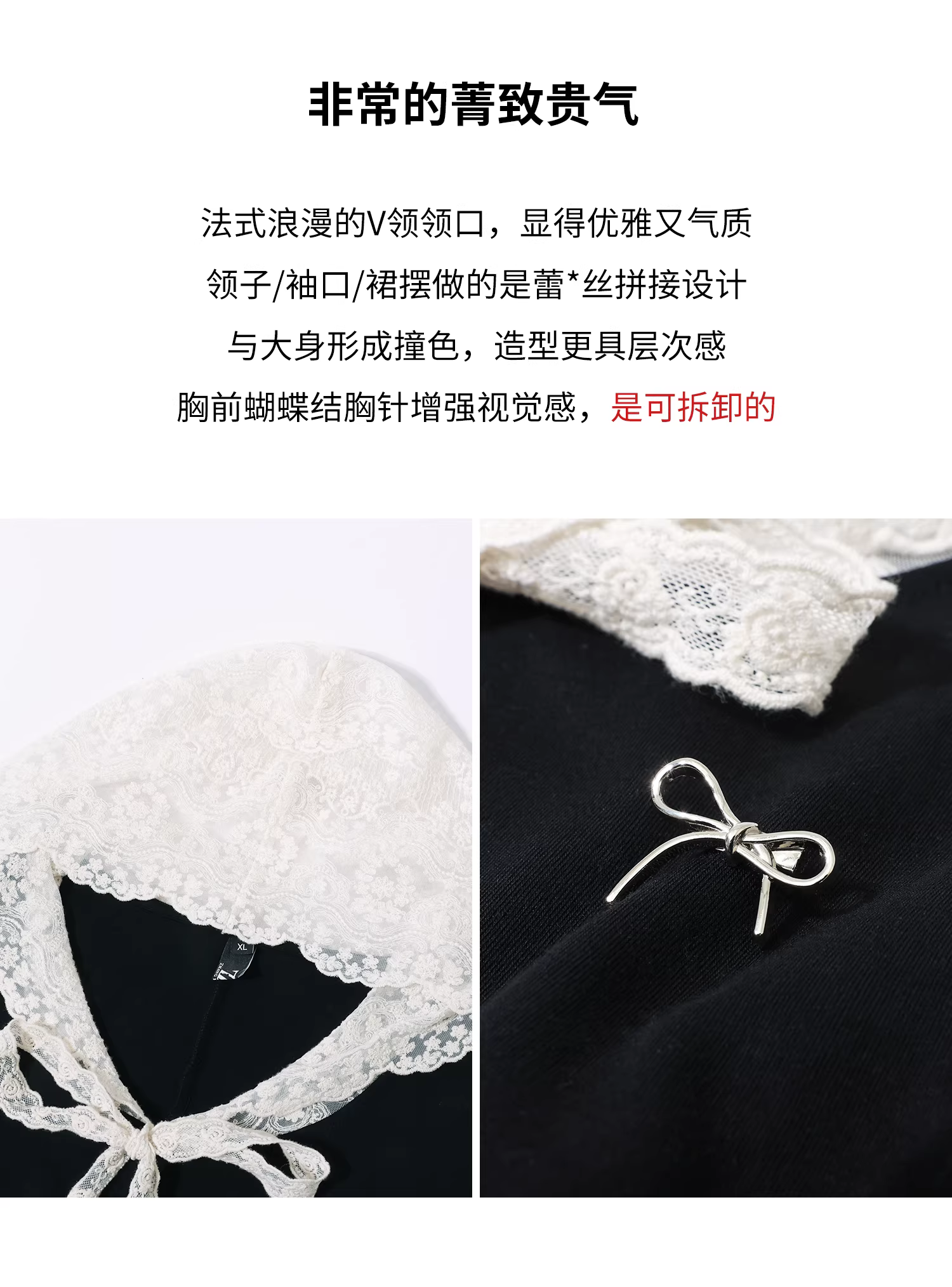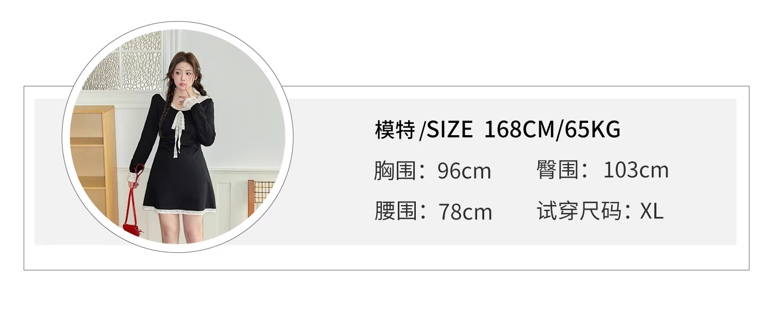- Zhang Daren 2025 - Quần áo nữ cỡ lớn mới, đầm kiểu Pháp tôn dáng dành cho phụ nữ có đường cong, đầm đen viền ren.
